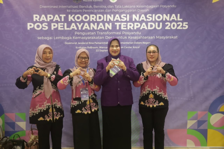 JAKARTA – Ketua Tim Pembina (TP) Posyandu Kabupaten Lampung Timur, Huzaimah Azwar Hadi, menghadiri Rapat Koordinasi Nasional (Rakornas) Posyandu se-Indonesia yang digelar di Krakatau Ballroom, Mercure Convention Center Ancol, Jakarta Utara, Senin (22/9/2025).