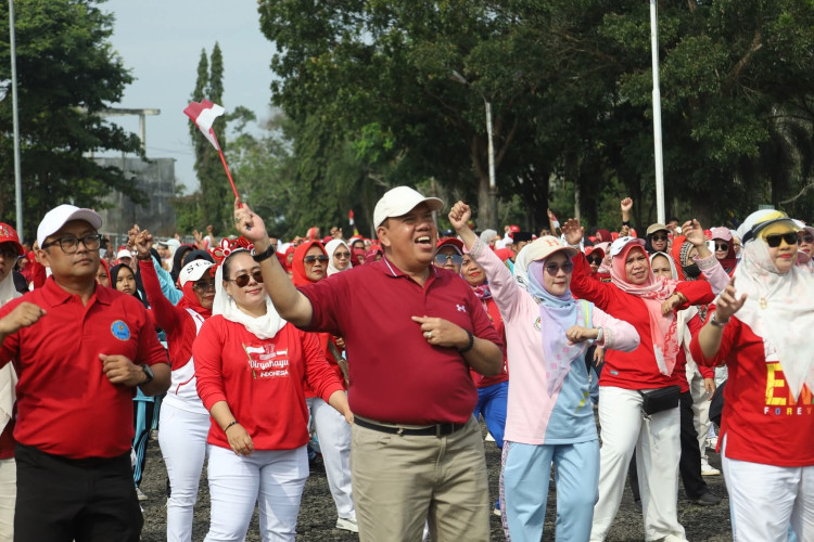 Meriahkan HUT RI ke-80 Pemkab Lamtim Gelar Jalan Sehat dan Senam Bersama