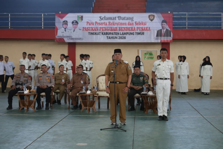 Lampung Timur (KOMDIGI Lamtim) – Pemerintah Kabupaten Lampung Timur secara resmi membuka kegiatan rekrutmen dan seleksi Calon Pasukan Pengibar Bendera Pusaka (Paskibraka) Tahun 2026. Upacara pembukaan berlangsung khidmat di GOR Bumei Tuah Bepadan, Senin (06/04/2026).