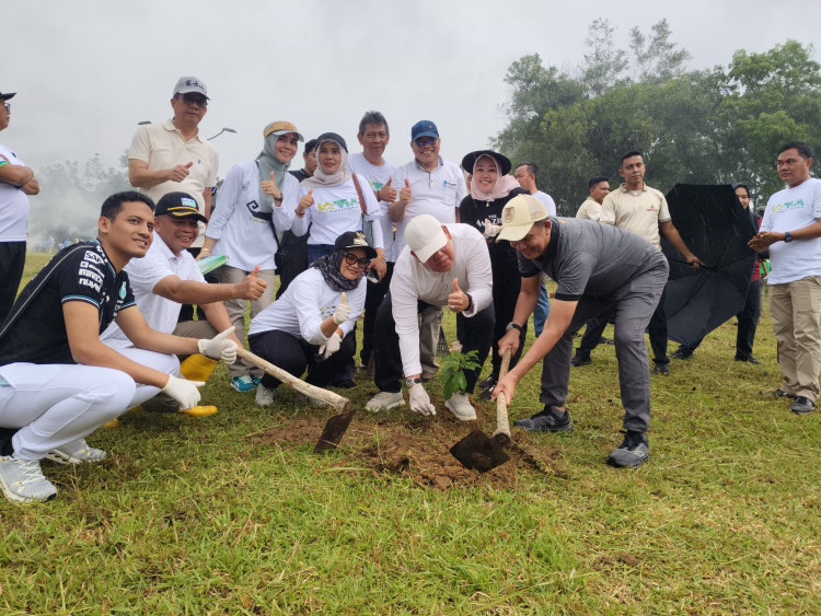Kegiatan penanaman pohon dilakukan secara simbolis oleh Bupati bersama jajaran Forkopimda dan peserta yang hadir.