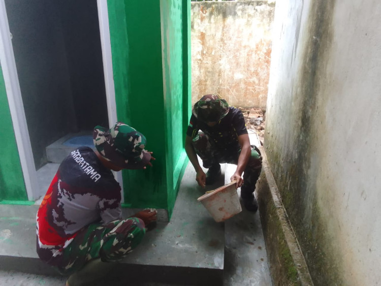 Sertu Irvan Muali anggota Satgas menuturkan, saat ini pembangunan MCK sudah sampai tahap finishing.