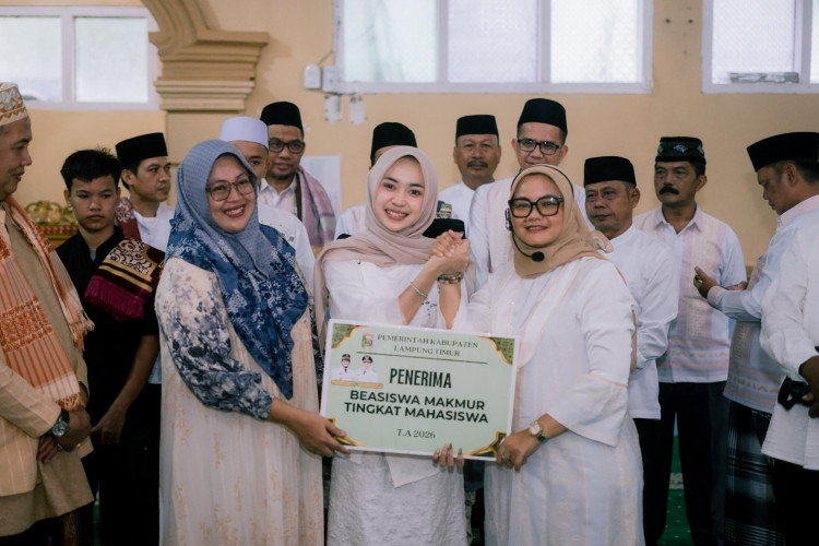 Lampung Timur (KONDISI LAMTIM) — Prestasi membanggakan kembali ditorehkan putri daerah Lampung Timur. Bupati Lampung Timur, Ela Siti Nuryamah, secara langsung menyerahkan Beasiswa Makmur tingkat mahasiswa kepada Intan Putri Lestari, pemenang ajang Kontes Dangdut Indonesia 2026.