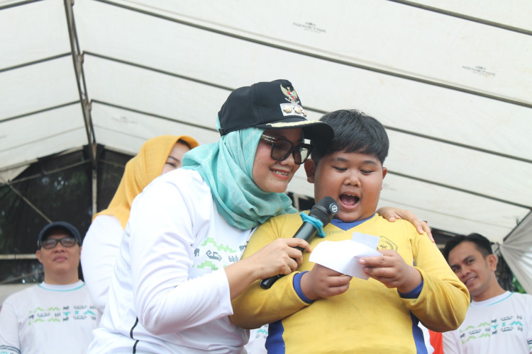 Dalam kesempatan tersebut, Bupati Ela Siti Nuryamah secara resmi melepas peserta jalan sehat yang diikuti ribuan masyarakat dari berbagai kalangan. Mulai dari pelajar tingkat SD, SMP, SMA/SMK hingga masyarakat umum turut ambil bagian dalam kegiatan yang penuh kebersamaan tersebut.
