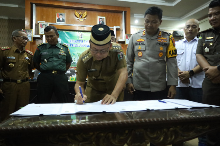 Jelang Pilkada Pemkab Lamtim Gelar Penandatanganan NPHD Dengan Polres Lamtim dan Kodim 0429 Lamtim