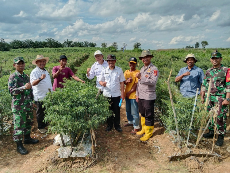 Mewakili Bupati Lamtim Plt Kadis Ketahanan Pangan Tanaman Pangan Hortikultura dan Perkebunan Tinjau Panen Cabai di Metro Kibang