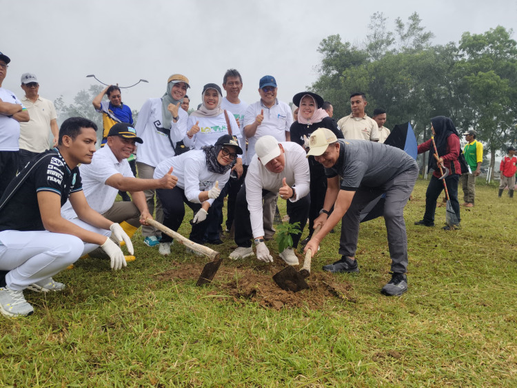Kegiatan penanaman pohon dilakukan secara simbolis oleh Bupati bersama jajaran Forkopimda dan peserta yang hadir.