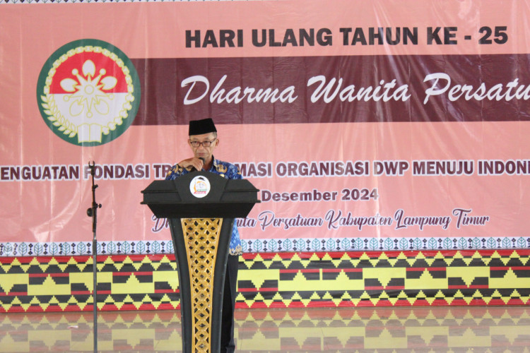 Hal itu disampaikan Sekretaris Daerah Kabupaten Lampung Timur Ir Moch Jusuf saat memberikan sambutan dalam acara Peringatan hari ibu dan HUT Dharma wanita persatuan ke 25 Kabupaten Lampung Timur, acara yang berlangsung di Aula Rumah Dinas Bupati Lampung Timur, rabu (19/12/2024) .