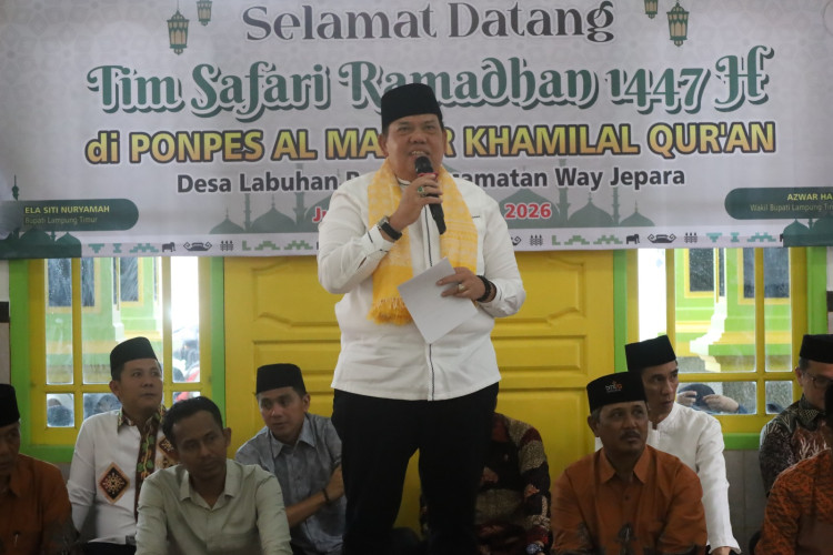 Way Jepara – Tim II Safari Ramadhan Pemerintah Kabupaten Lampung Timur yang dipimpin Wakil Bupati Lampung Timur, Azwar Hadi, melaksanakan kunjungan ke Pondok Pesantren Al Manar Khamilal Qur’an, Desa Labuhan Ratu I, Kecamatan Way Jepara, Kamis (27/02/2026).