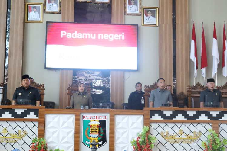 Sukadana (KOMDIGI LAMTIM) – Wakil Bupati Lampung Timur, Azwar Hadi, menghadiri sekaligus menyampaikan Pendapat Bupati dalam Rapat Paripurna DPRD Kabupaten Lampung Timur terkait dua Rancangan Peraturan Daerah (Raperda) inisiatif DPRD, yakni Raperda tentang Penyelenggaraan Jaringan Dokumentasi dan Informasi Hukum (JDIH) dan Raperda tentang Pembentukan Produk Hukum Daerah, yang digelar di Ruang Sidang DPRD Lampung Timur.