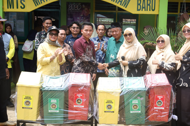 Bupati Lamtim Ela Siti Nuryamah Tanamkan Kesadaran Lingkungan Sejak Dini, Serahkan Bantuan Bak Sampah di SMP Ma’arif NU
