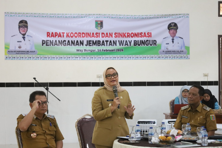 Way Bungur (KOMDIGI LAMTIM) – Pemerintah Kabupaten Lampung Timur menggelar Rapat Koordinasi dan Sinkronisasi Rencana Penanganan serta Pembahasan Permasalahan Jembatan Penghubung Desa Kali Pasir dengan Desa Tanjung Tirto, Kecamatan Way Bungur. Kegiatan tersebut berlangsung di Gedung LDII Desa Tanjung Tirto, Selasa (10/02/2026).